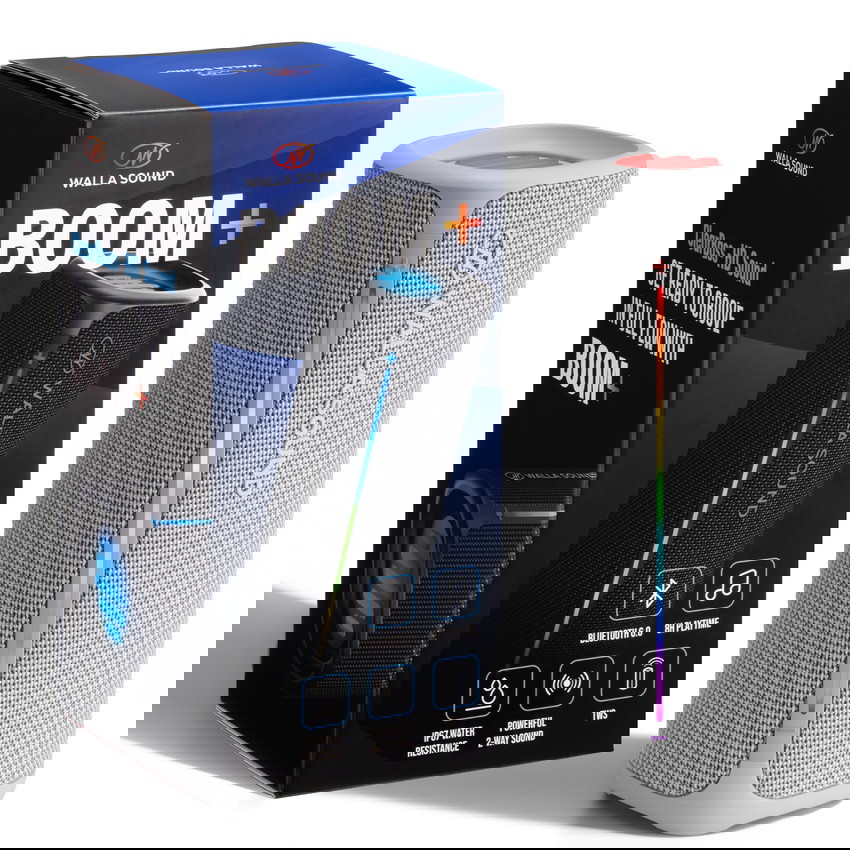 Whether at the beach, park, or home, the Walla Sound Boom+ delivers premium sound quality in a rugged, portable package. Enjoy high-fidelity audio, long-lasting power, and effortless wireless connection anytime, anywhere.