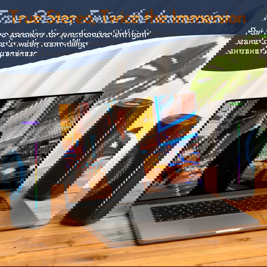 Easily pair 2 Boom+ speakers with the push of a single button for a true cinematic sound experience.