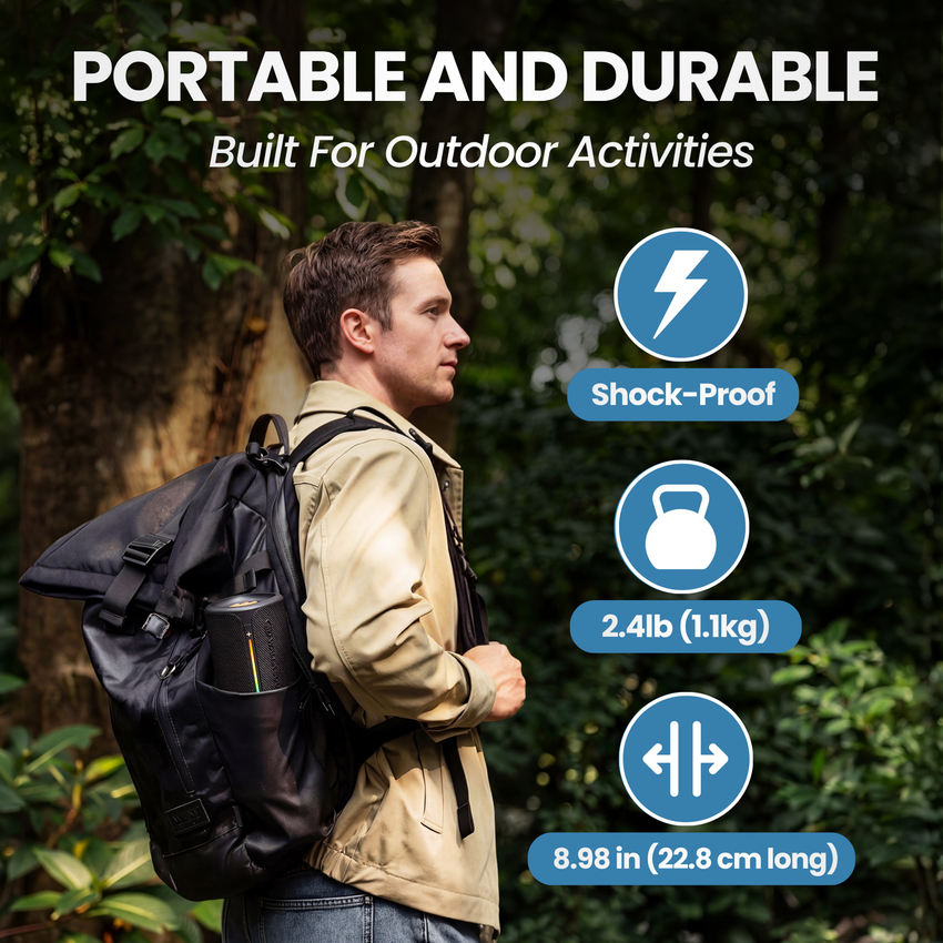- Portable and Durable: Compact 70×70×194 mm (2.8×2.8×7.7 in) design weighing only 495 g (1.1 lb), with IP67 waterproof rating for outdoor adventures.
